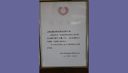 2014年,上海紅箭自動(dòng)化設(shè)備有限公司為上海市慈善基金會(huì)捐款